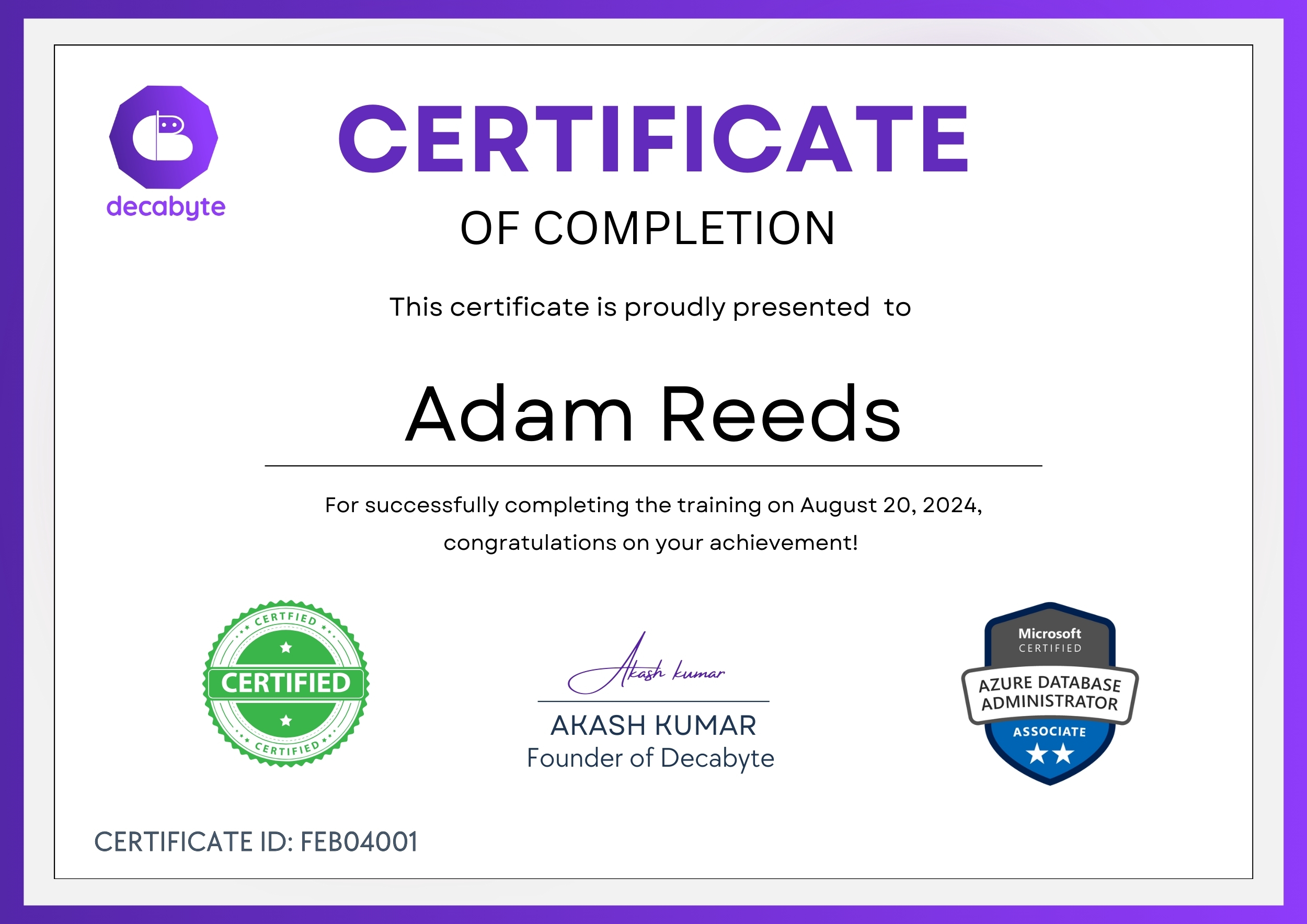 At Decabyte, we offer hands-on learning with real-world case studies, practical labs, and expert-led guidance to help you become a proficient Azure Database Administrator.